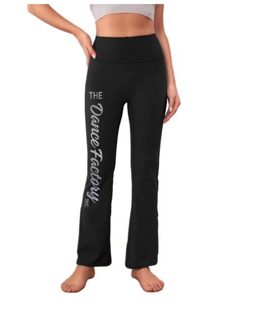 Lightweight, full zip, sport jacket. Back -"Dance Factory" graphic sparkles with tons of rhinestones. Front -customized with DF and dancers name Matching Pants